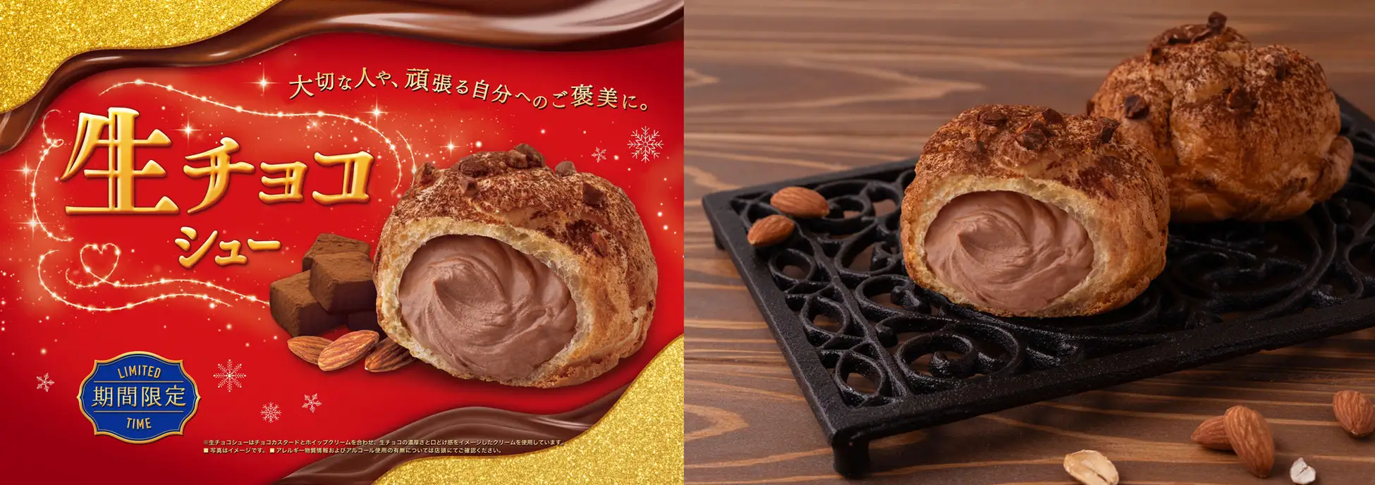 ※生チョコシューはチョコカスタードとホイップクリームを合わせ、生チョコの濃厚さと口どけ感をイメージしたクリームを使用しています。