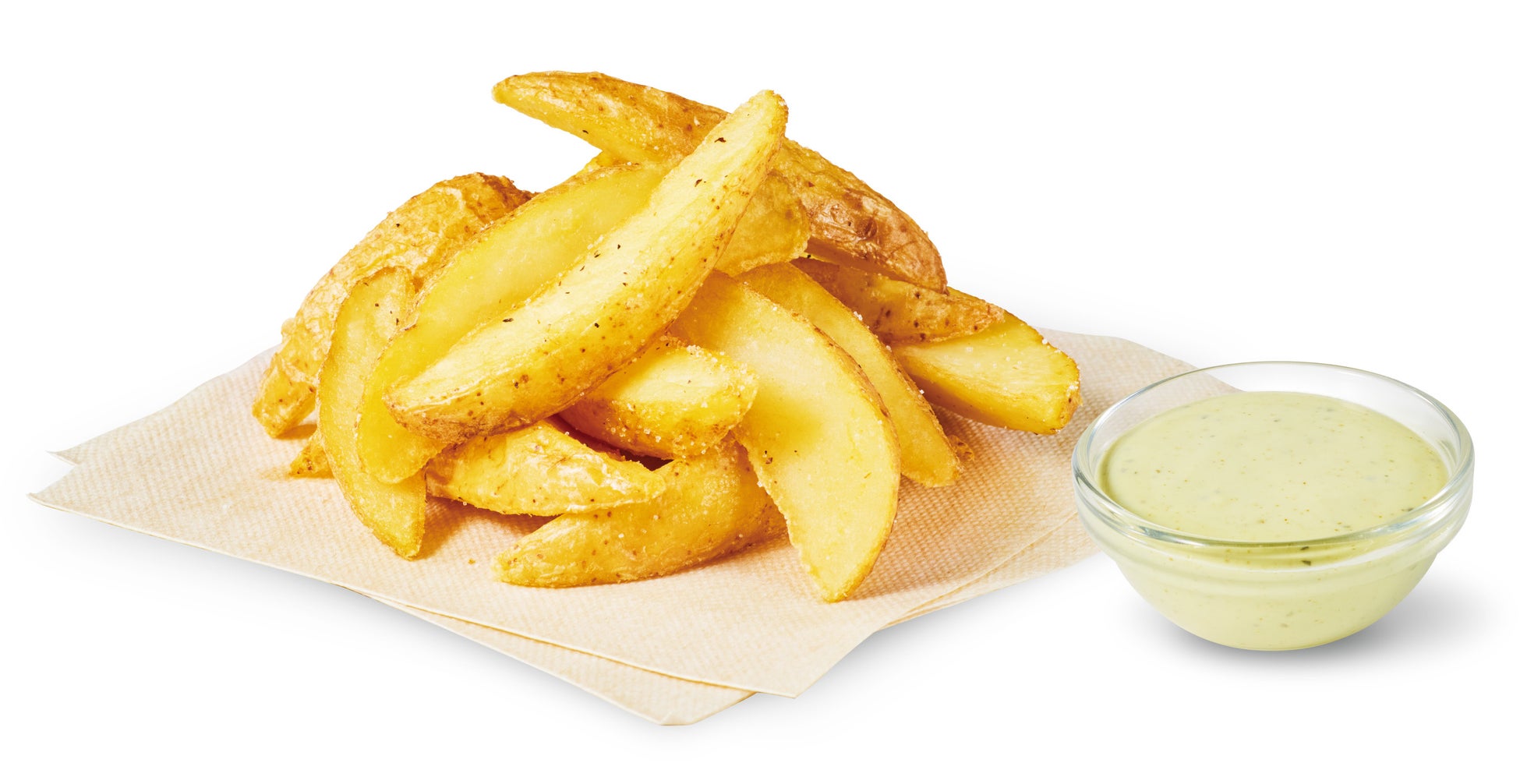 東南アジアでよく使われる2種のアジアンハーブ「バイマックルー(コブミカンの葉)」と「レモングラス」を使用した香りと酸味が特長のソースに、マヨネーズを合わせました。揚げたてアツアツ!北海道十勝産のフライドポテトにたっぷりとディップしてお楽しみください。パクチーチキンバーガーとの相性も抜群です。※北海道産フライドポテトRのみ
