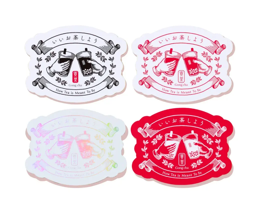 「いちご杏仁」をご購入のお客様に、「いいお茶しよう」をテーマにした、オリジナルデザインのステッカーをランダムで1枚プレゼント。心ときめく4種類のデザインを展開します。