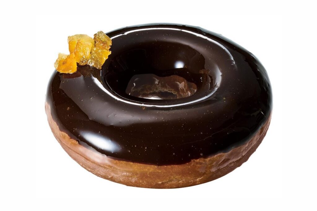 オランジェットをイメージしたドーナツ。チョコ生地を芳醇なベネズエラ産カカオマス入りのビターチョコでコーティングして、甘酸っぱいオレンジナパージュを重ねました。さらにオレンジピールダイスをトッピング。チョコとオレンジが織りなすハーモニーが絶品です。*ベネズエラ産カカオマス入りチョコレート使用
