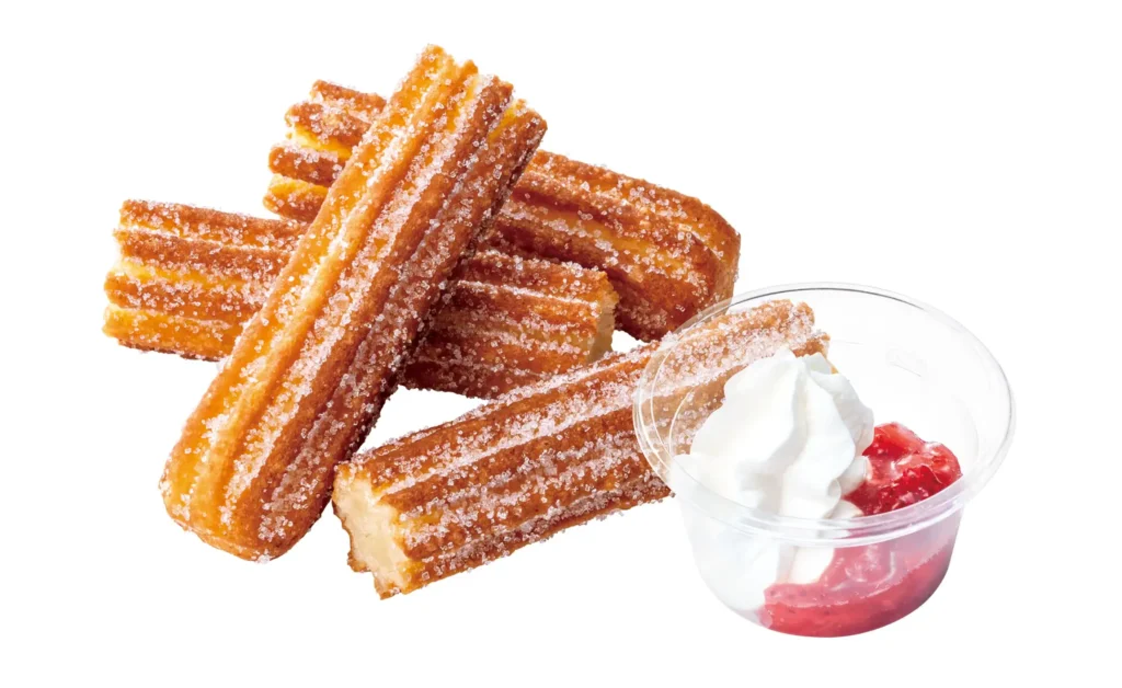 苺の果肉がごろっと入ったソースとホイップクリームに、サクッともちもち食感のチュロをディップしてお楽しみいただくスイーツです。