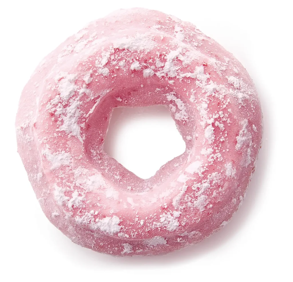 桜風味のもちっとした生地にいちご風味のグレーズをコーティングしました。ほんのりとした生地の甘さと甘酸っぱいいちご風味グレーズの春かおる味わいをお楽しみください。 ※「春かおるいちご風」にはいちご(果肉・果汁等)は使用していません。