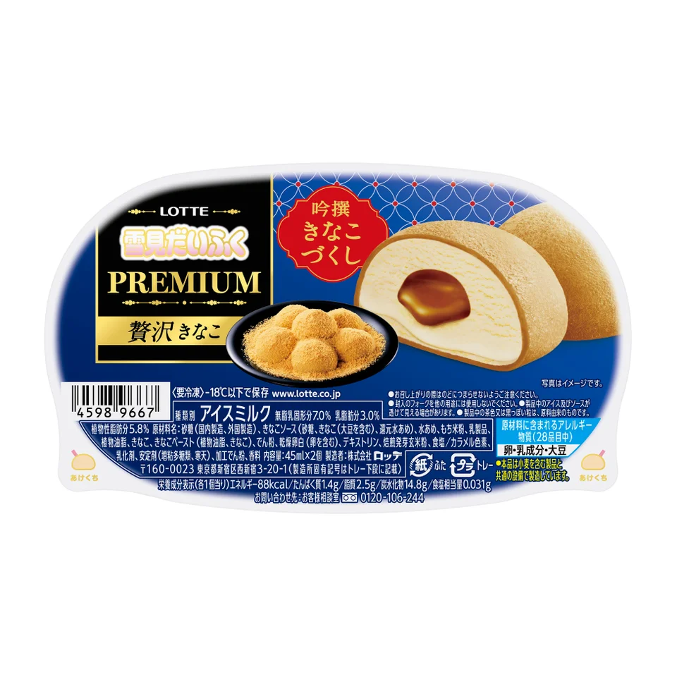 「雪見だいふくPREMIUM」は24年2月に贅沢な味わいでゆったりとした時間を過ごしていただきたい想いで誕生した雪見だいふくのプレミアムシリーズです。今回の新作は、この時期人気のきなこをふんだんに使用した贅沢な仕立てで、きなこ好きにはたまらない一品です。コクのある深煎りきなこソース、きなこアイスを香り高いきなこ味のおもちで包んだきなこづくしのプレミアムな雪見だいふく。まだまだ寒さが厳しい時期に、こたつの中できなことおもちの相性の良さを楽しみながら優雅なひと時をお過ごしください。